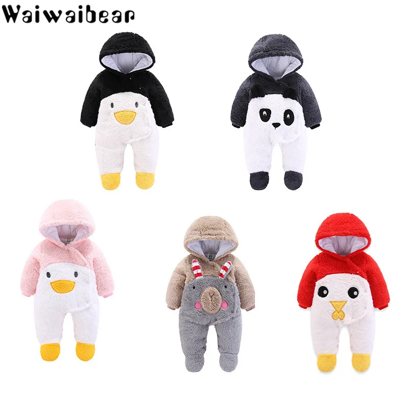 Cheap Chance for Newborn Winter Baby Hoodie Animal Clothes Infant Girls Boy Warm Outwear Rompers Thickening Fluff Ou