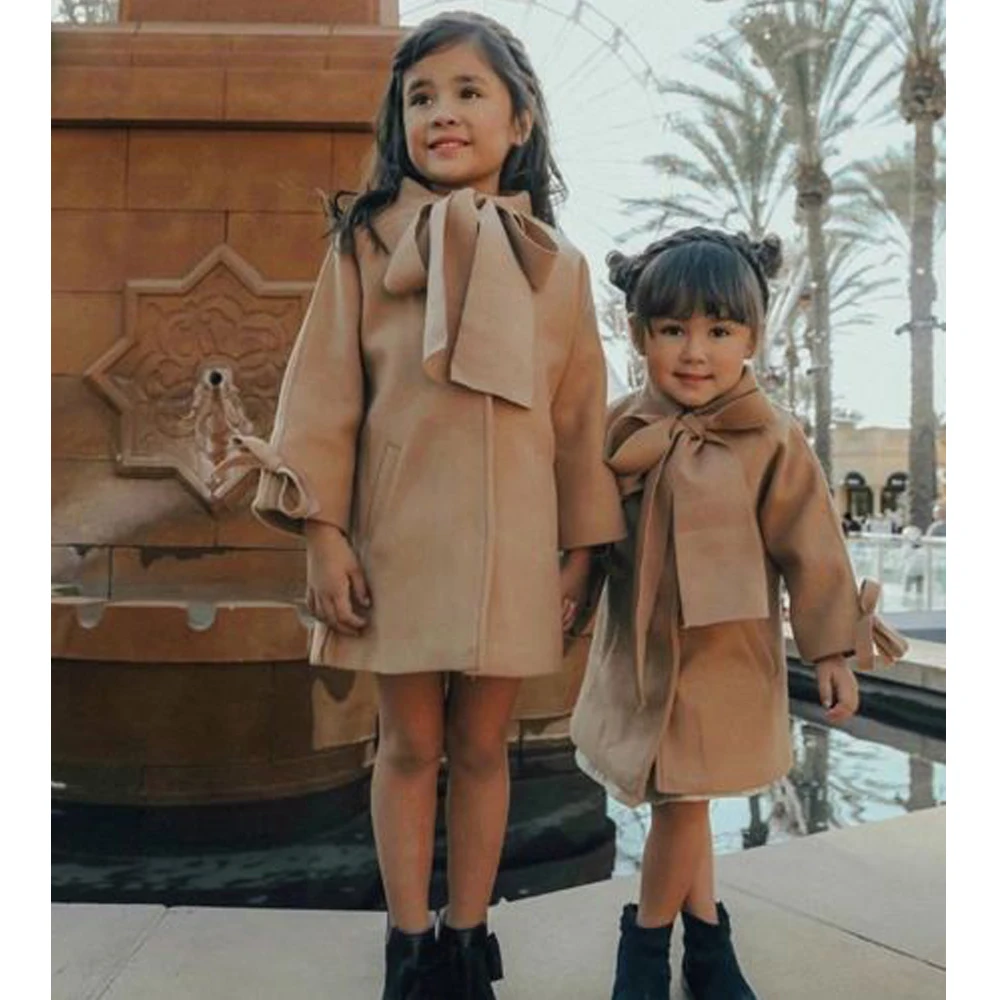 Good Price of Winter Kid Baby Girls Warm Coat Wool Bowknot Overcoat Outwear Jacket Trench arrival Clothes 2-8Y